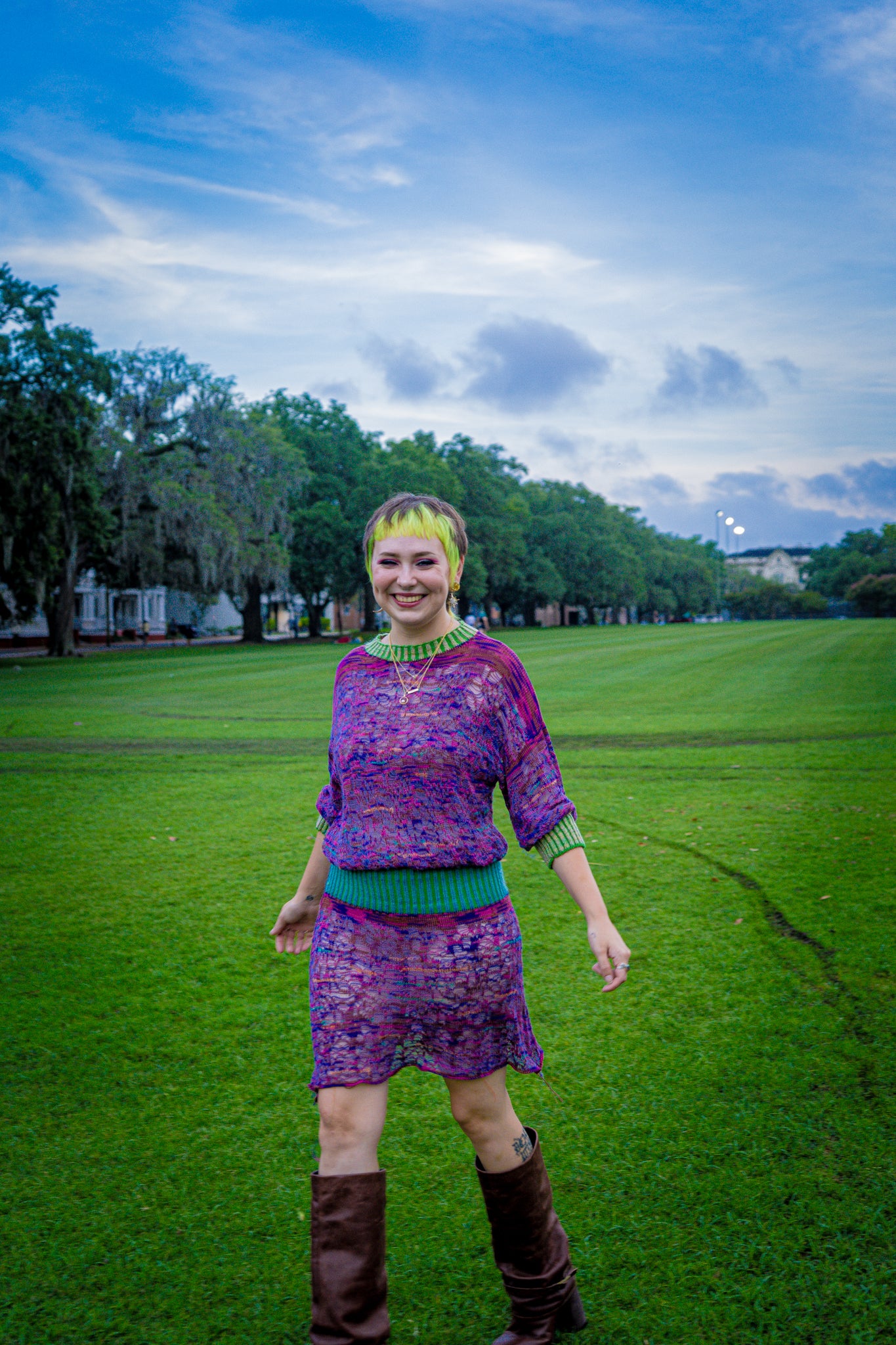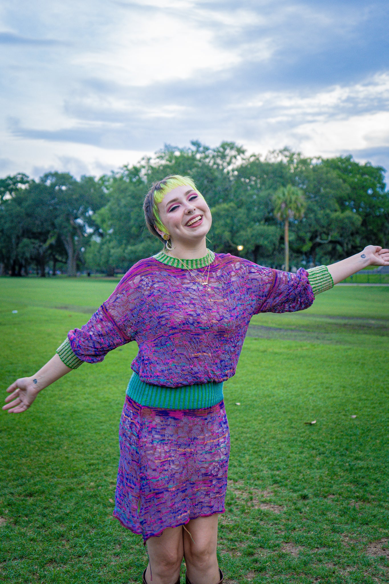 The aurora lace dress is truly one of a kind. The dress is made using a punch lace technique and is delicate, airy, and colorful.